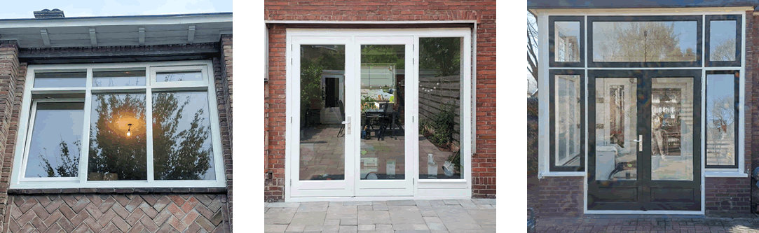 Wij plaatsen al onze houten kozijnen vaak met samen met HR ++ glas. Wij komen de houten kozijnen altijd zelf inmeten, maken deze vervolgens in de werkplaats en worden dan geplaatst door ons eigen team.