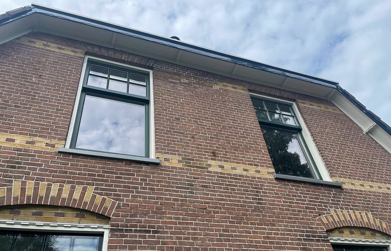 Op de Heuvellaan en de Korteweg hebben wij nieuwe vaste bovenramen en schuiframen mogen namaken in de originele stijl. Het bovenraam is uitgevoerd met een deels dichte roedeverdeling, terwijl het schuifraam is voorzien van modern schuifbeslag en antieke greepjes. Deze ramen zijn afgewerkt met de originele oude kantplanken, waardoor het pand zijn authentieke uitstraling behoudt.