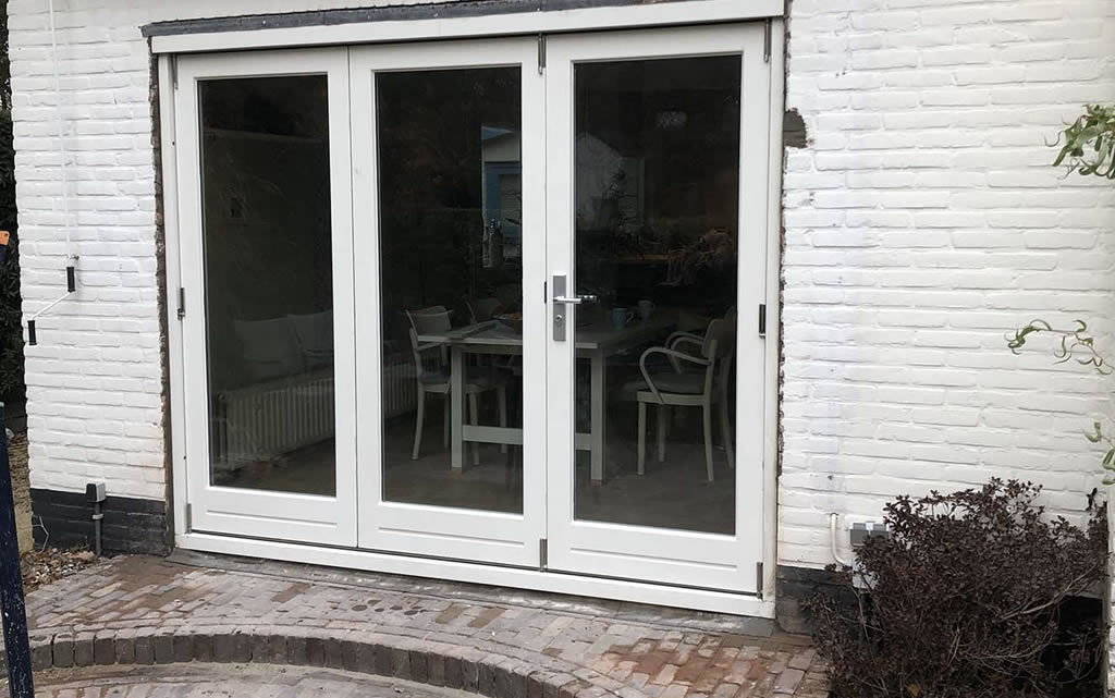 U kunt ervoor kiezen de deuren naar binnen te vouwen of naar buiten, dit is afhankelijk van uw wensen en de beschikbare ruimte. Meestal voorzien wij de pui van een loopdeur om de pui ook alledaags te kunnen gebruiken.